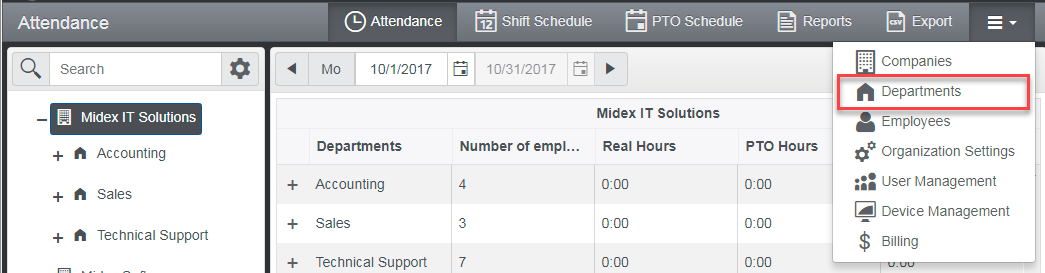 If Department module is not displayed, select Departments from the Module Menu or from the extra drop down menu