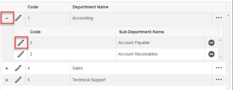 Click on Edit button beside the sub-department that you want to edit